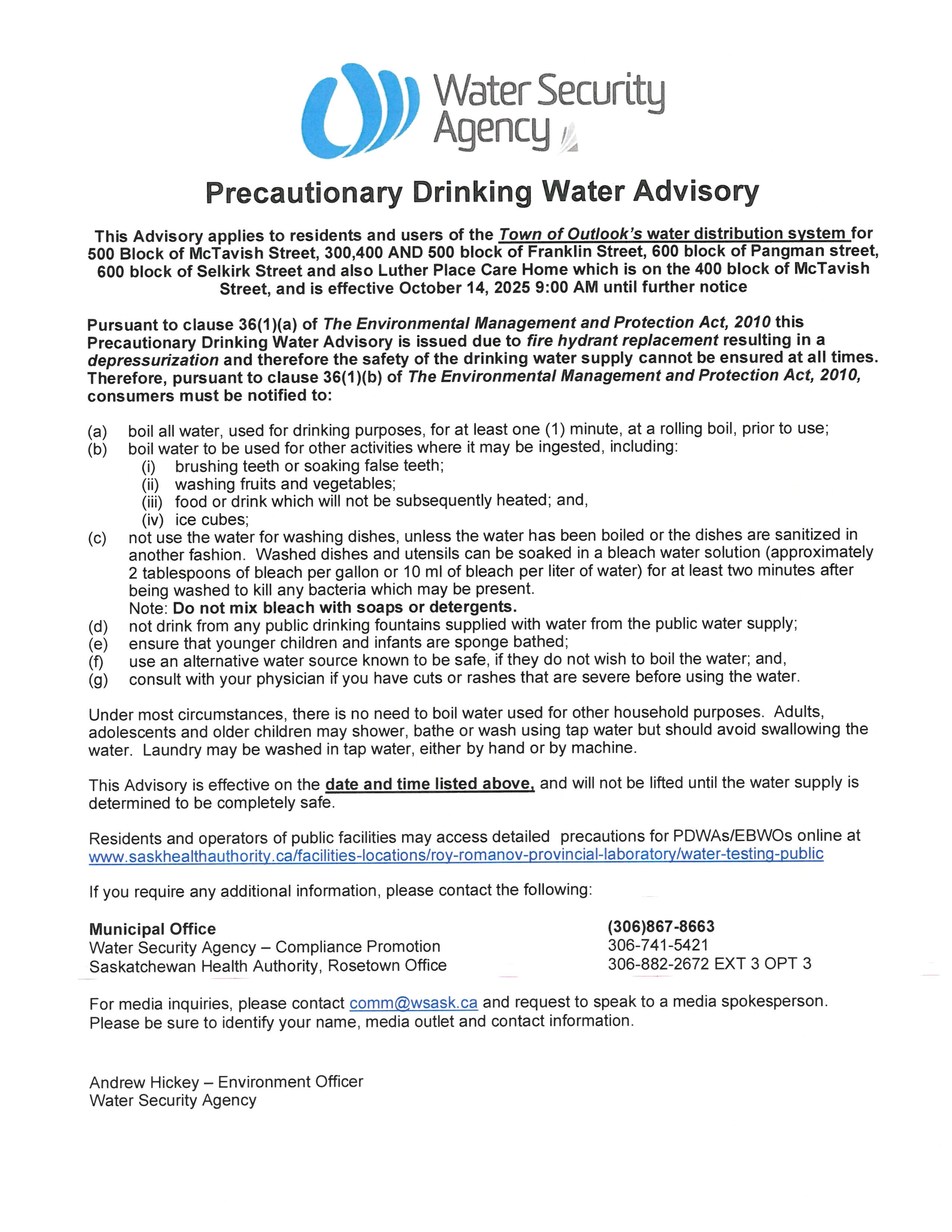 Water Shut Off - 300 to 500 blocks of Franklin Street & McTavish